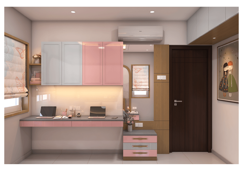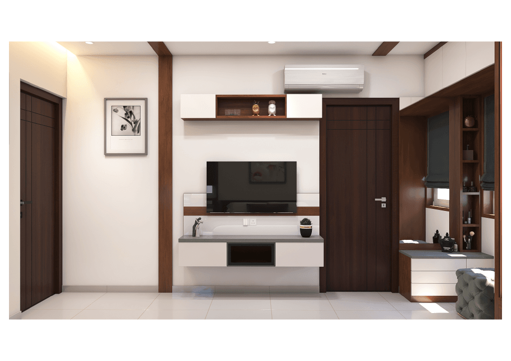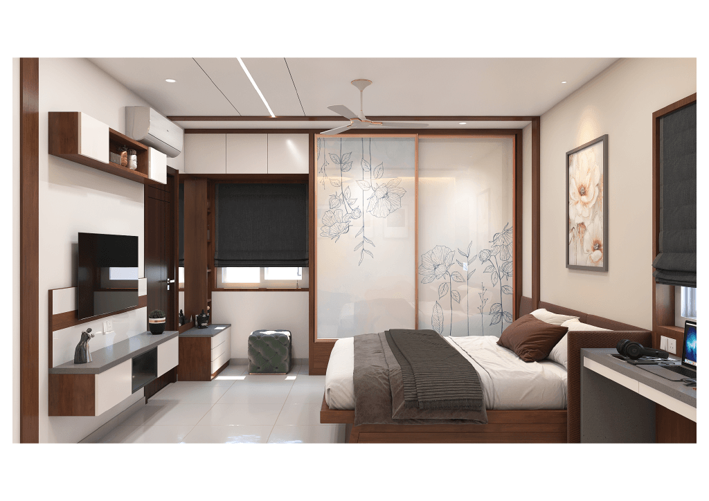 This Aparna residence is a reflection of warm modern living, crafted with a fine balance of functionality, elegance, and personalised spatial planning. The home is designed as a calm, grounded space where every area flows naturally into the next, maintaining a consistent material palette and a premium contemporary aesthetic.
